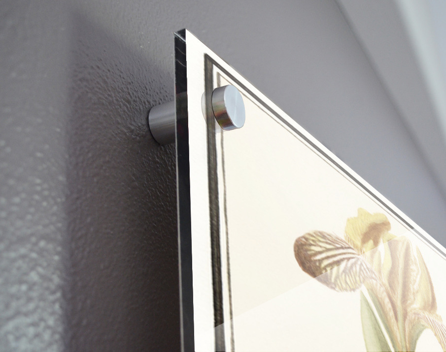Printed to the edge - Ready to hang - provided with 4 premium polished aluminum stand off ( wall screws and mounting hardware provided ) We suggest a thicker 3/16" acrylic for any size over 42 inches to guarantee a straight acrylic, without curvature