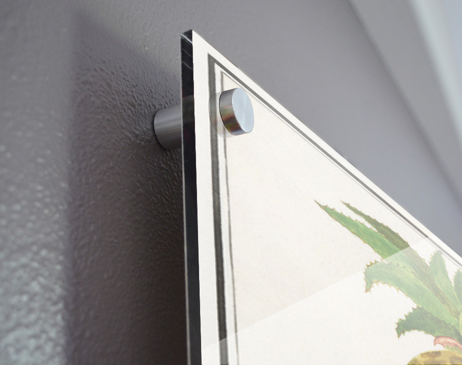 Printed to the edge - Ready to hang - provided with 4 premium polished aluminum stand off ( wall screws and mounting hardware provided ) We suggest a thicker 3/16" acrylic for any size over 42 inches to guarantee a straight acrylic, without curvature