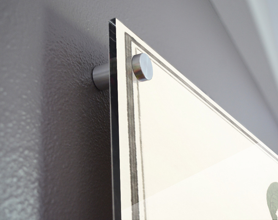 Printed to the edge - Ready to hang - provided with 4 premium polished aluminum stand off ( wall screws and mounting hardware provided ) We suggest a thicker 3/16" acrylic for any size over 42 inches to guarantee a straight acrylic, without curvature