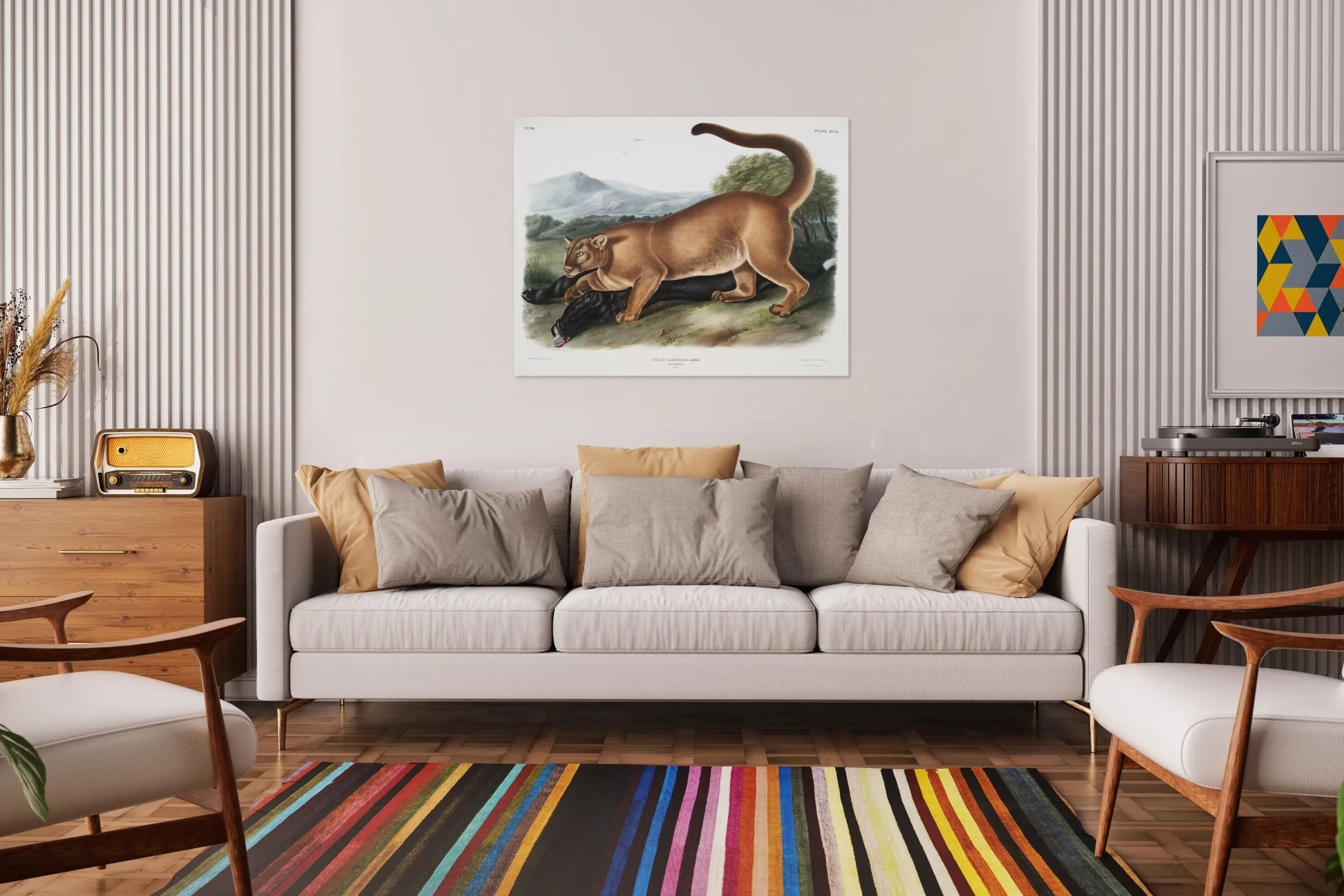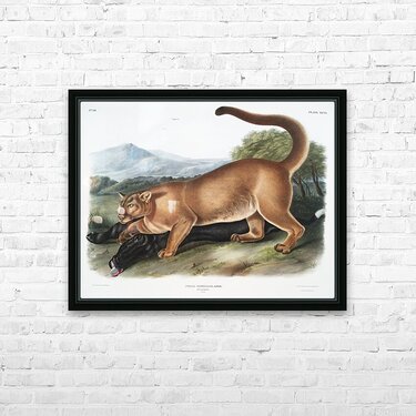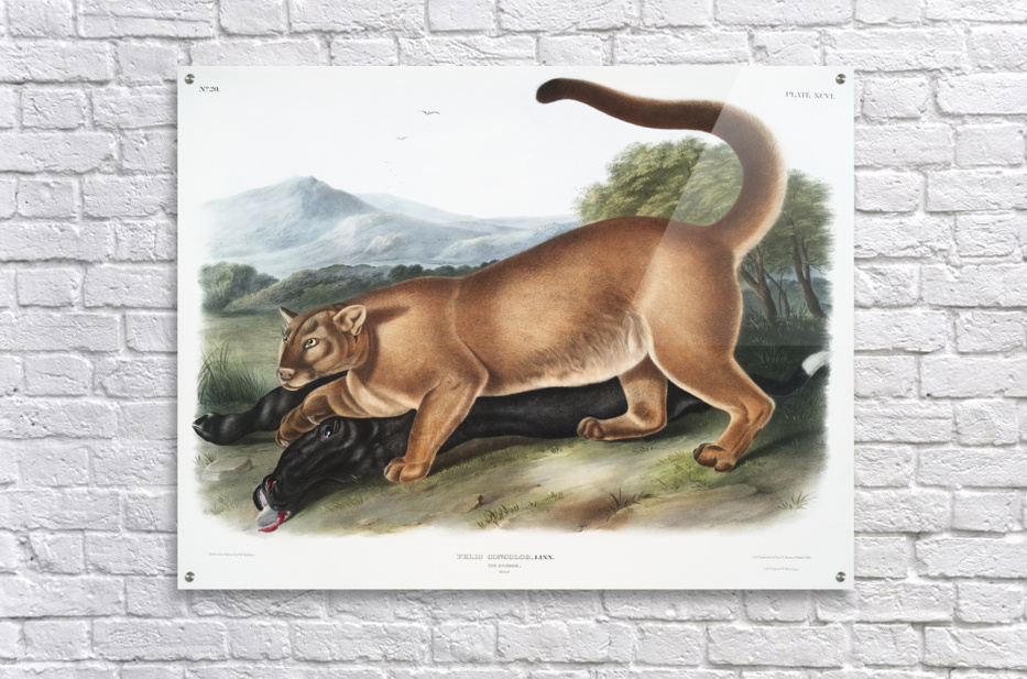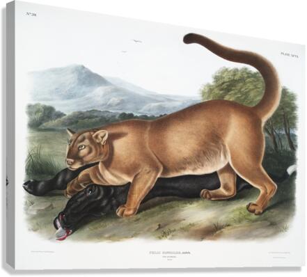 Cougar Felis concolor from the viviparous quadrupeds of North America 1845 illustrated by John Woodhouse Audubon 1812-1862.