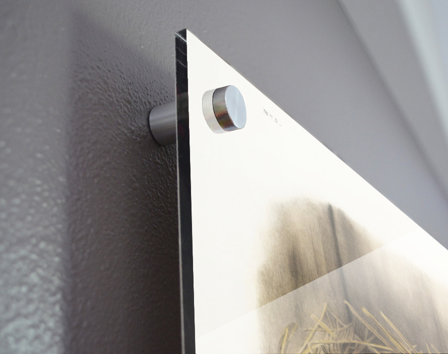 Printed to the edge - Ready to hang - provided with 4 premium polished aluminum stand off ( wall screws and mounting hardware provided ) We suggest a thicker 3/16" acrylic for any size over 42 inches to guarantee a straight acrylic, without curvature