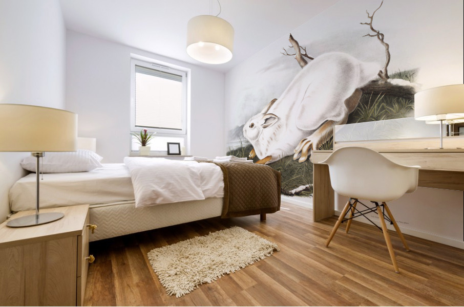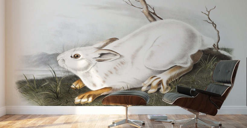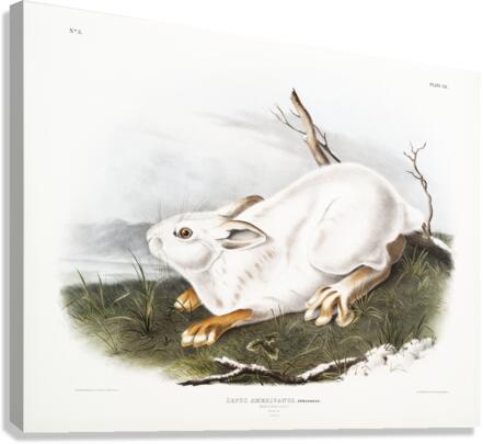 Northern Hare in winter Lepus Americanus from the viviparous quadrupeds of North America 1845 illustrated by John Woodhouse Audubon 1812-1862.