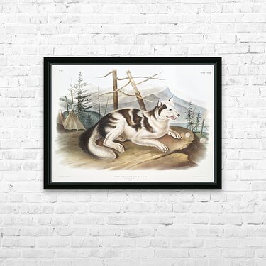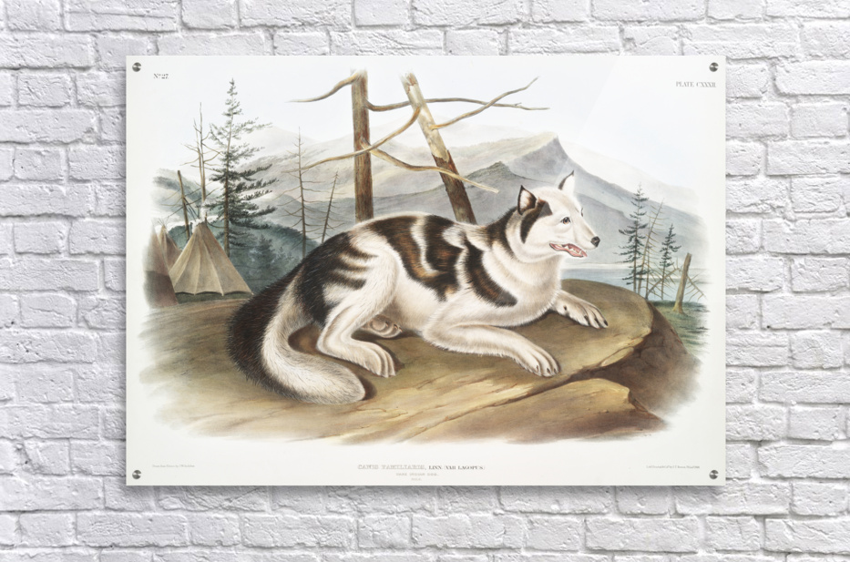 Hare-Indian Dog Canis familiaris from the viviparous quadrupeds of North America 1845 illustrated by John Woodhouse Audubon 1812-1862.