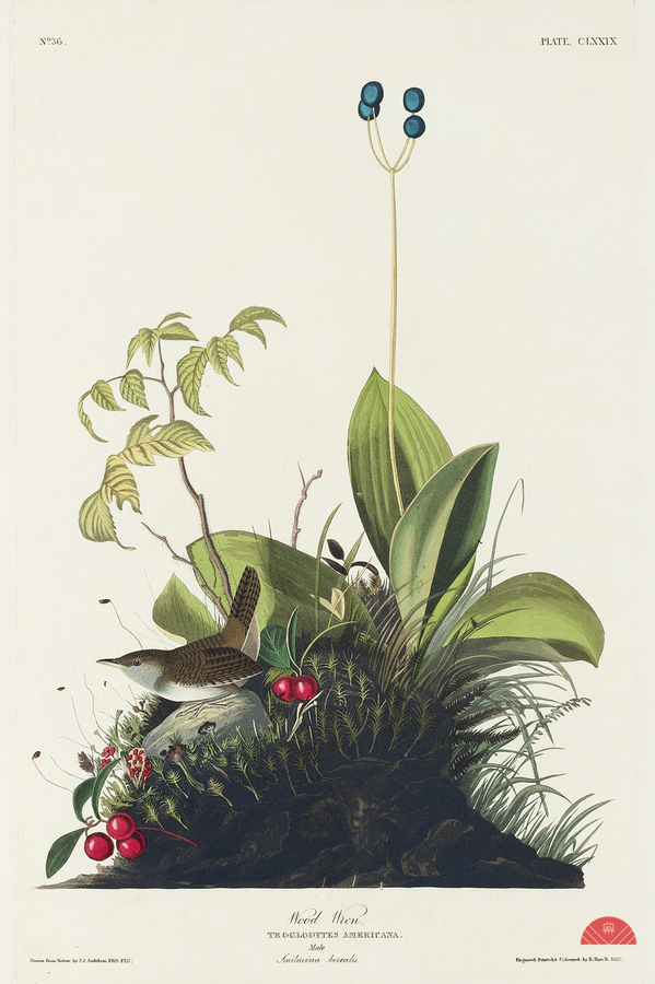 Wood Wren from Birds of America 1827 by John James Audubon 1785 - 1851 etched by Robert Havell 1793 - 1878.