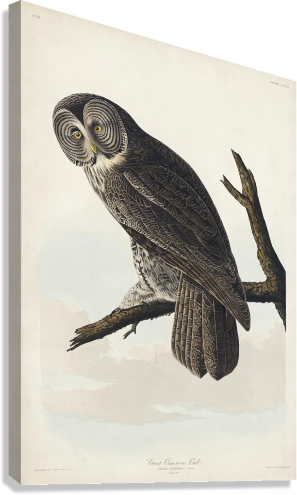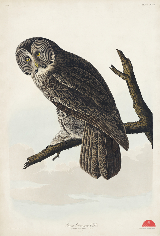 Great Cinereous Owl from Birds of America 1827 by John James Audubon 1785 - 1851 etched by Robert Havell 1793 - 1878.