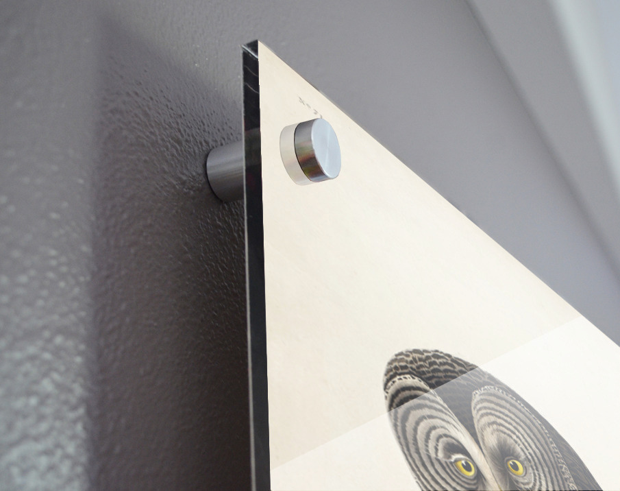 Printed to the edge - Ready to hang - provided with 4 premium polished aluminum stand off ( wall screws and mounting hardware provided ) We suggest a thicker 3/16" acrylic for any size over 42 inches to guarantee a straight acrylic, without curvature