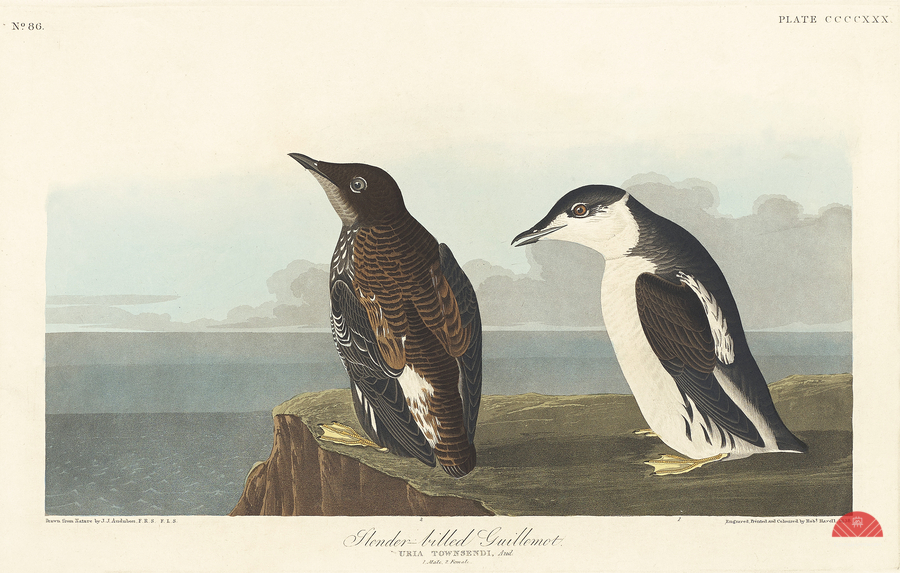 Slender-billed Guillemot from Birds of America 1827 by John James Audubon 1785 - 1851 etched by Robert Havell 1793 - 1878.