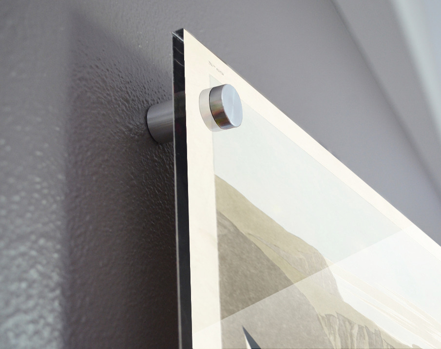 Printed to the edge - Ready to hang - provided with 4 premium polished aluminum stand off ( wall screws and mounting hardware provided ) We suggest a thicker 3/16" acrylic for any size over 42 inches to guarantee a straight acrylic, without curvature