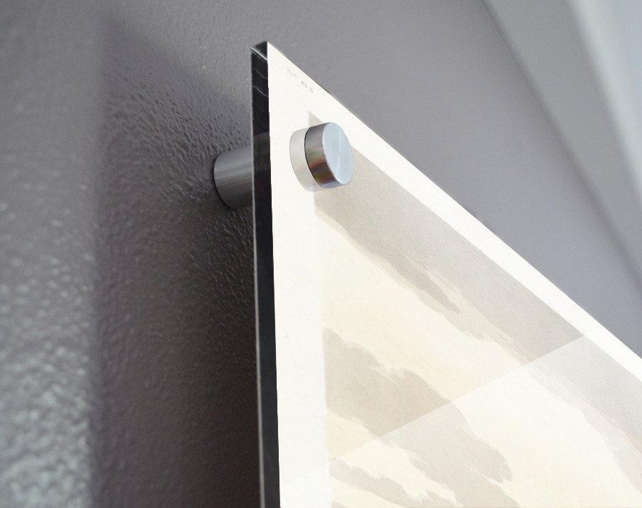 Printed to the edge - Ready to hang - provided with 4 premium polished aluminum stand off ( wall screws and mounting hardware provided ) We suggest a thicker 3/16" acrylic for any size over 42 inches to guarantee a straight acrylic, without curvature