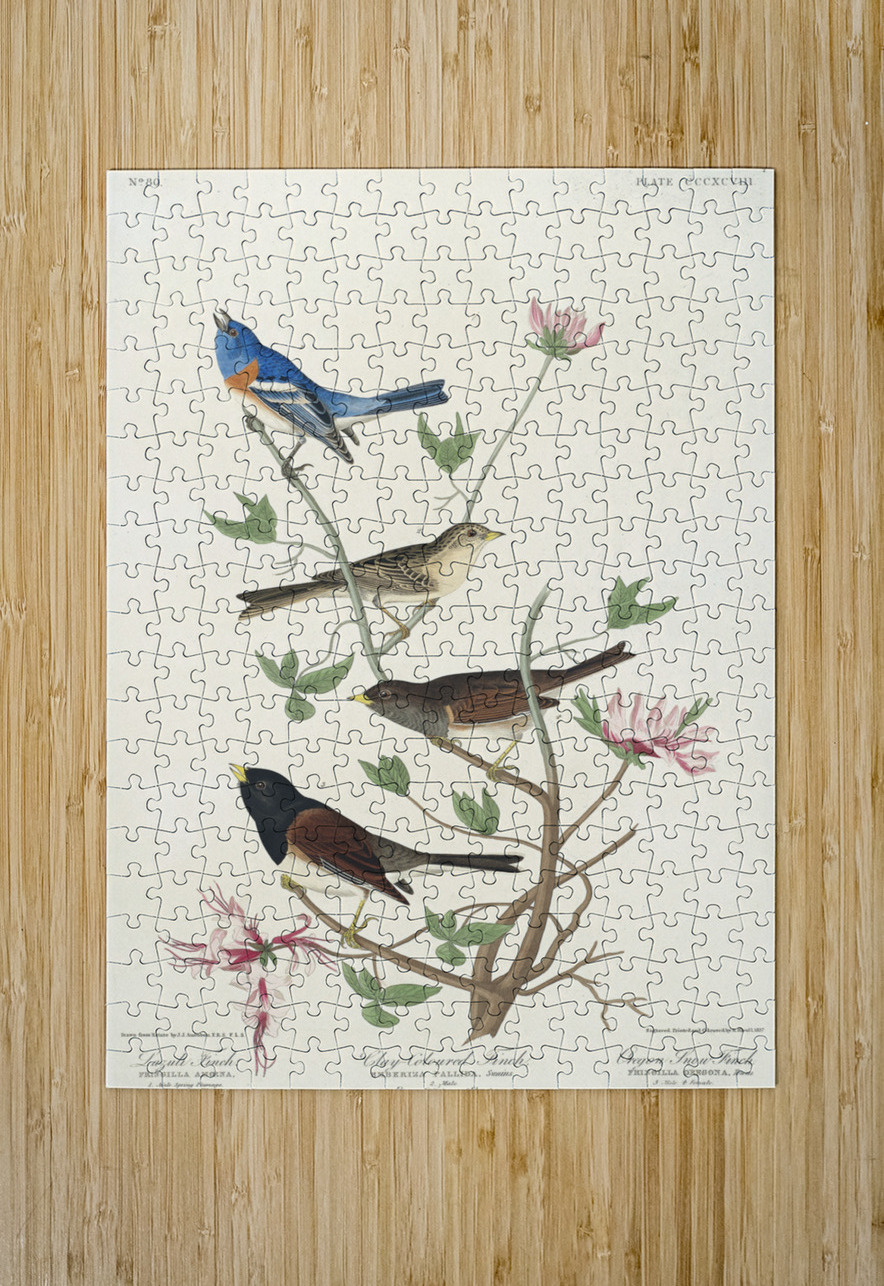 Lazuli Finch Clay-coloured Finch Oregon Snow Finch from Birds of America 1827 by John James Audubon 1785 - 1851 etched by Robert Havell 1793 - 1878.