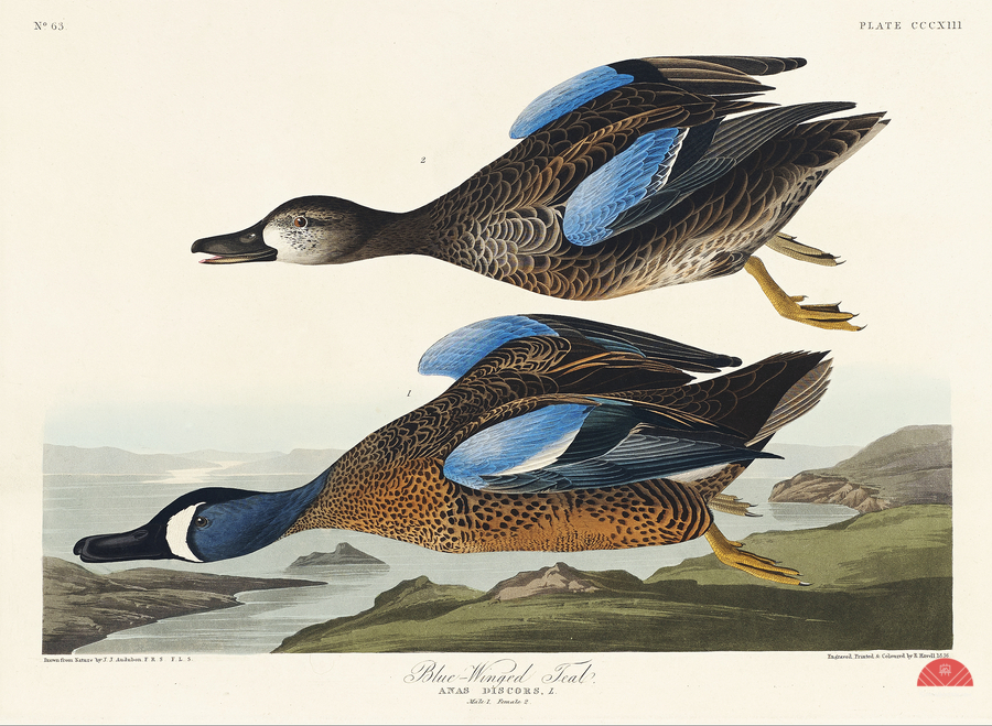 Blue-Winged Teal from Birds of America 1827 by John James Audubon 1785 - 1851 etched by Robert Havell 1793 - 1878.