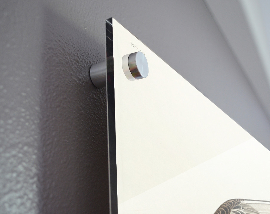 Printed to the edge - Ready to hang - provided with 4 premium polished aluminum stand off ( wall screws and mounting hardware provided ) We suggest a thicker 3/16" acrylic for any size over 42 inches to guarantee a straight acrylic, without curvature