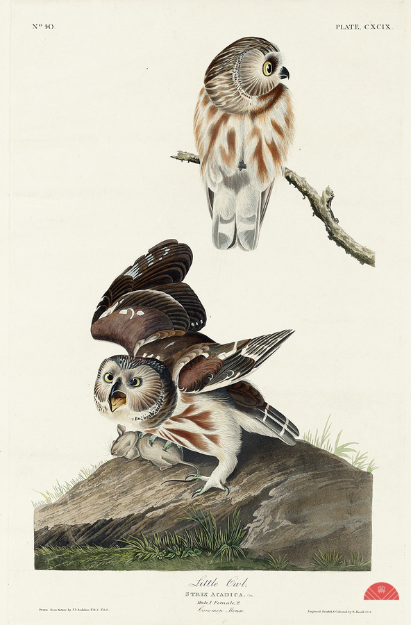 Little Owl from Birds of America 1827 by John James Audubon 1785 - 1851 etched by Robert Havell 1793 - 1878.