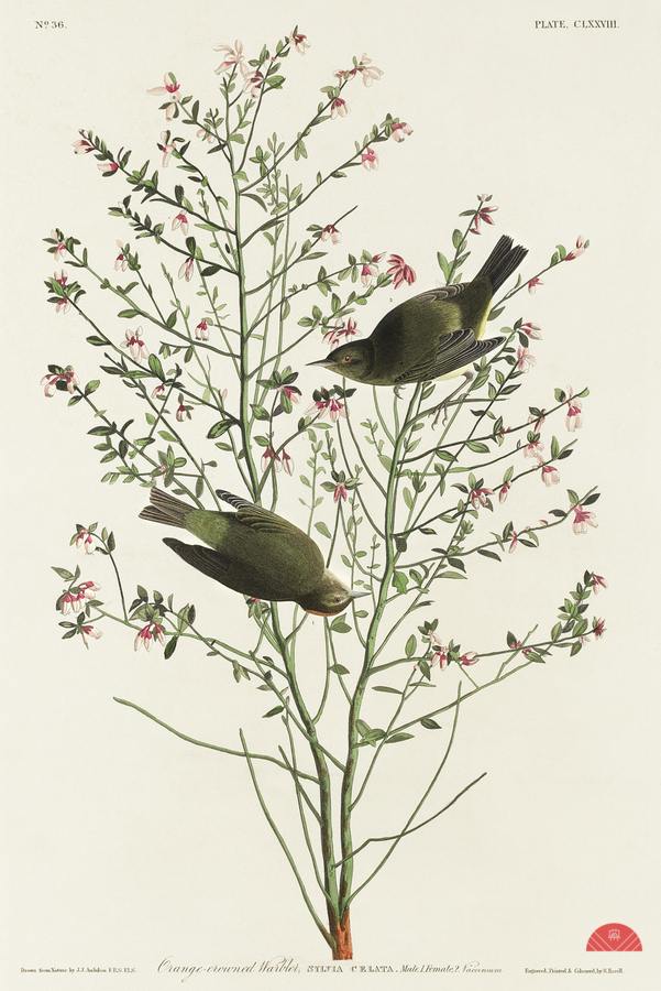 Orange-crowned Warbler from Birds of America 1827 by John James Audubon 1785 - 1851 etched by Robert Havell 1793 - 1878.