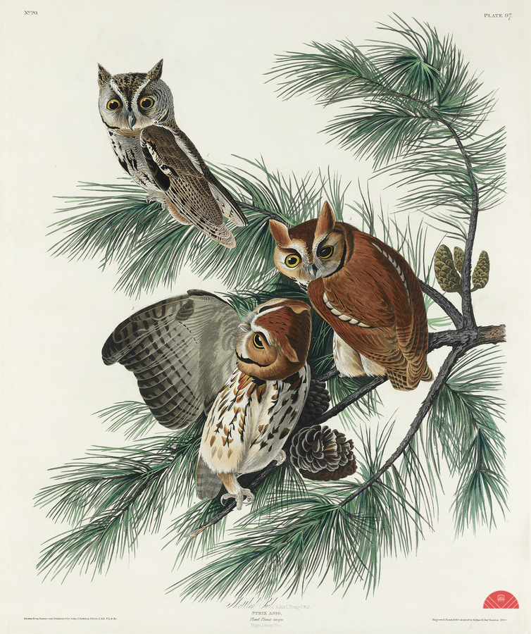 Little Screech Owl from Birds of America 1827 by John James Audubon 1785 - 1851 etched by Robert Havell 1793 - 1878.