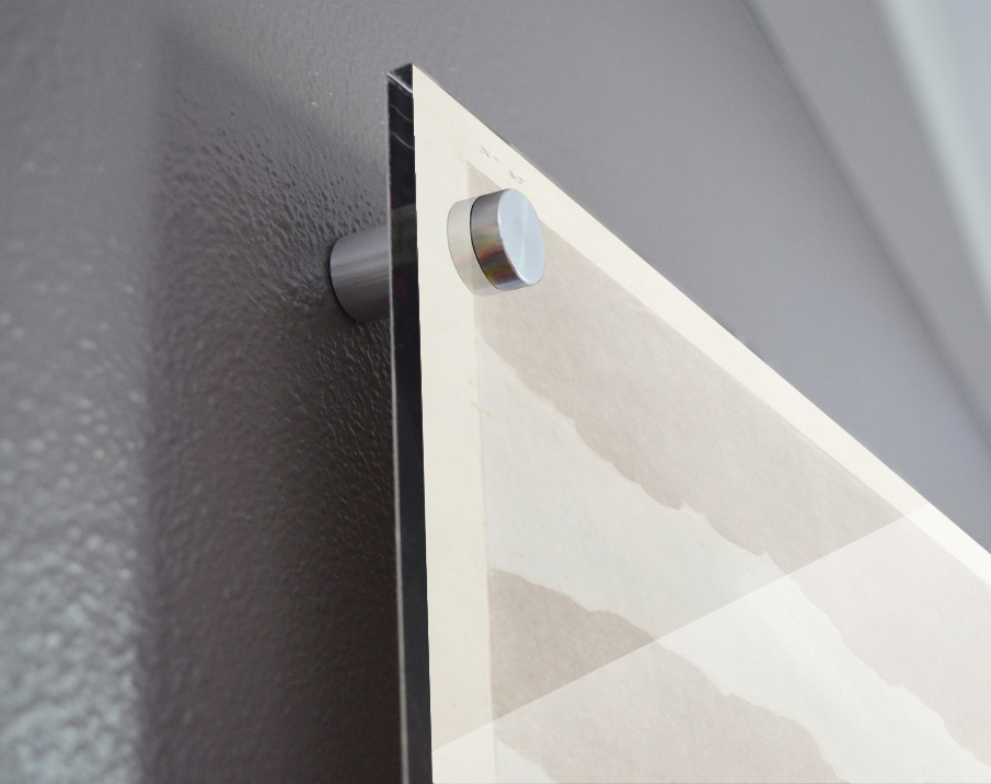 Printed to the edge - Ready to hang - provided with 4 premium polished aluminum stand off ( wall screws and mounting hardware provided ) We suggest a thicker 3/16" acrylic for any size over 42 inches to guarantee a straight acrylic, without curvature