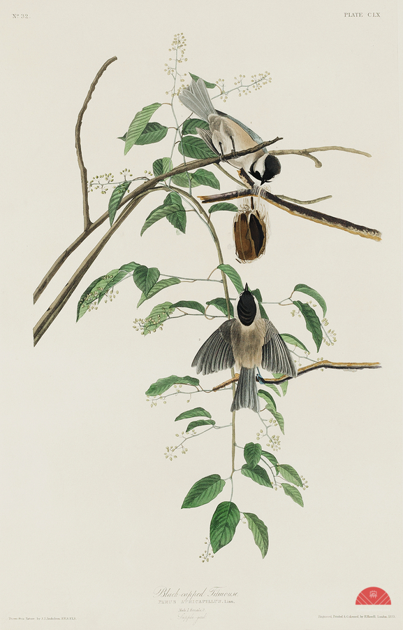 Carolina Titmouse from Birds of America 1827 by John James Audubon 1785 - 1851 etched by Robert Havell 1793 - 1878.