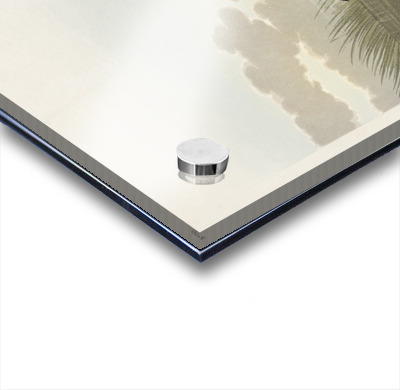 Printed to the edge - Ready to hang - provided with 4 premium polished aluminum stand off ( wall screws and mounting hardware provided ) We suggest a thicker 3/16" acrylic for any size over 42 inches to guarantee a straight acrylic, without curvature