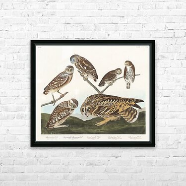 Burrowing Owl Large-Headed Burrowing Owl Little Night Owl Columbian Owl and Short-cared Owl Picture Frame Printing