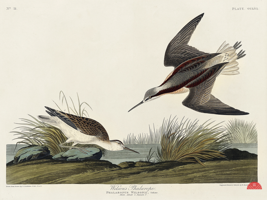 Wilsons Phalarope from Birds of America 1827 by John James Audubon 1785 - 1851 etched by Robert Havell 1793 - 1878.