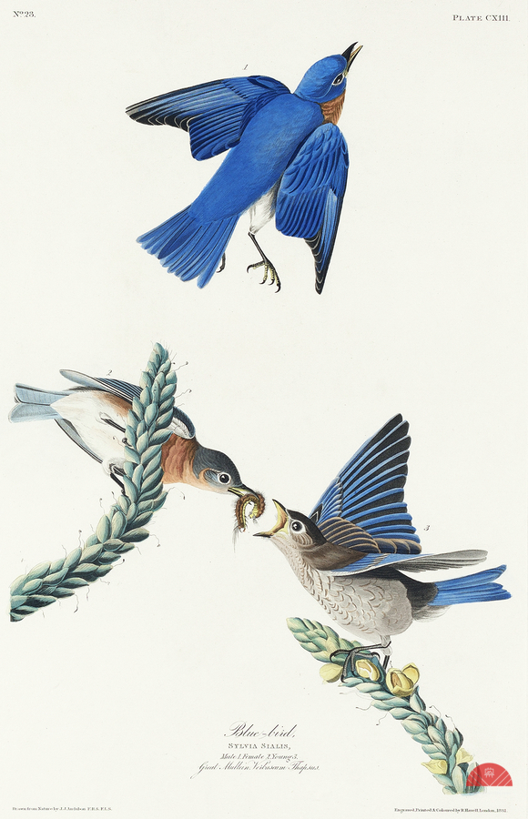 Blue-bird from Birds of America 1827 by John James Audubon 1785 - 1851 etched by Robert Havell 1793 - 1878.
