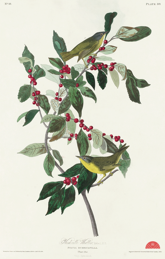 Nashville Warbler from Birds of America 1827 by John James Audubon 1785 - 1851 etched by Robert Havell 1793 - 1878.