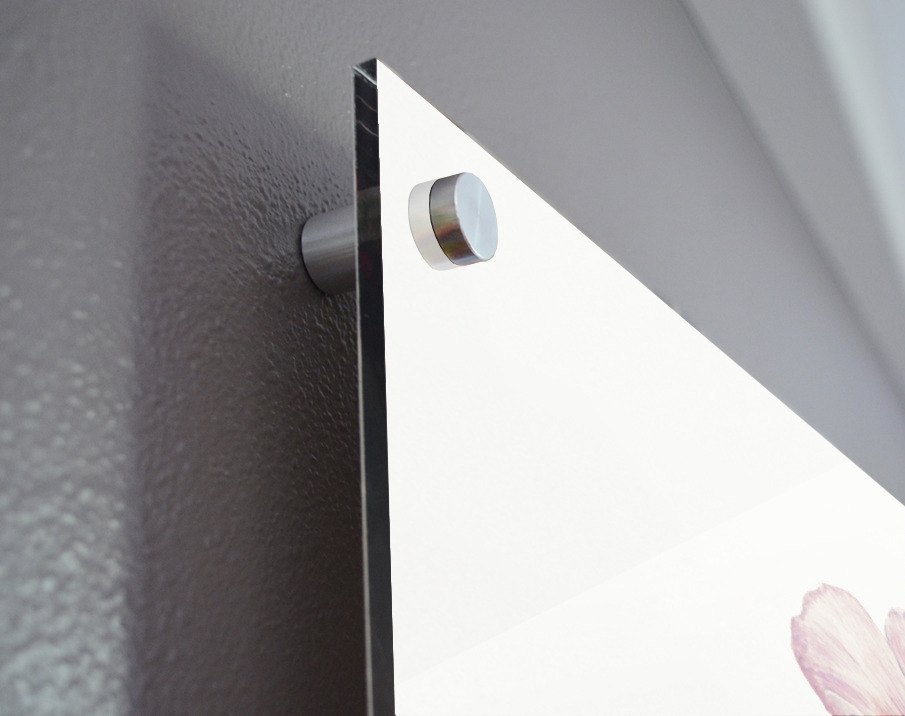 Printed to the edge - Ready to hang - provided with 4 premium polished aluminum stand off ( wall screws and mounting hardware provided ) We suggest a thicker 3/16" acrylic for any size over 42 inches to guarantee a straight acrylic, without curvature