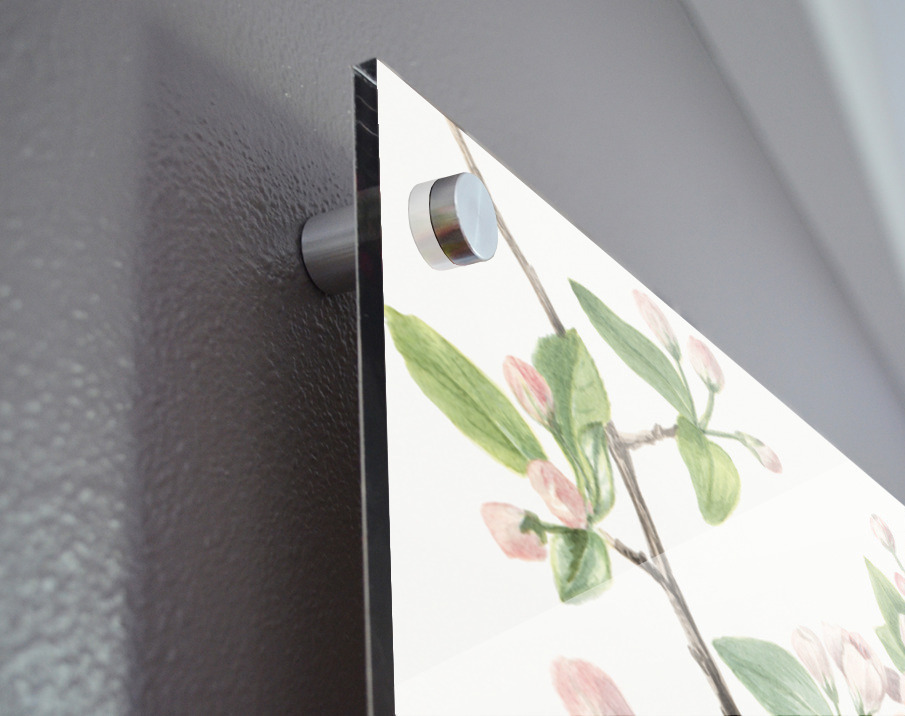 Printed to the edge - Ready to hang - provided with 4 premium polished aluminum stand off ( wall screws and mounting hardware provided )