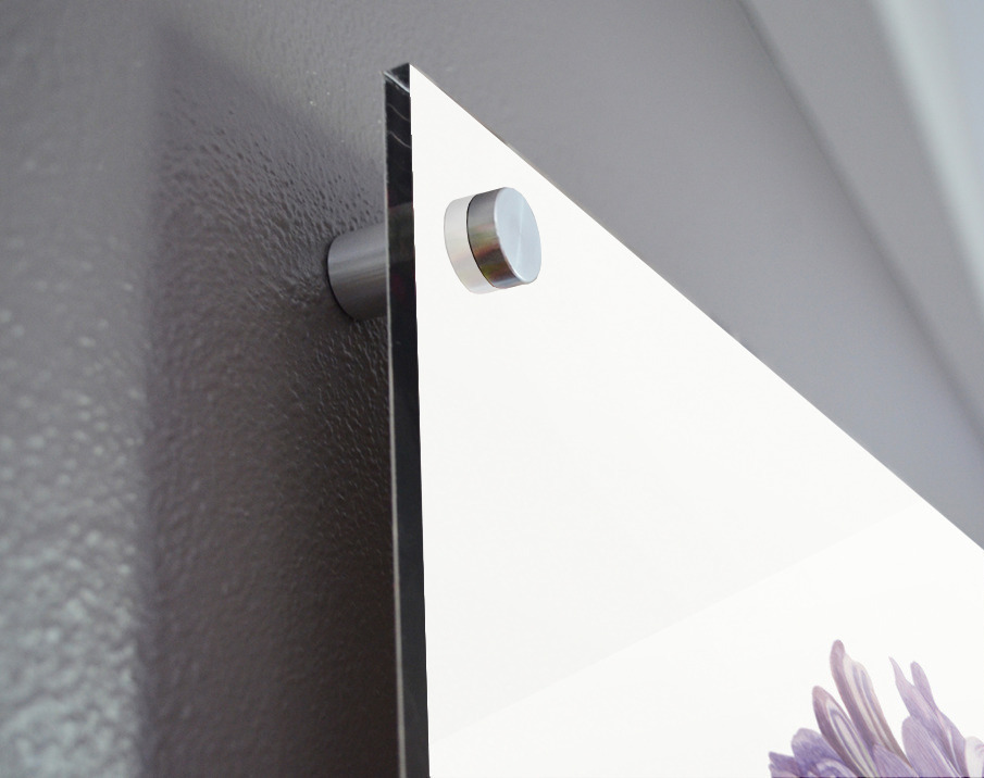 Printed to the edge - Ready to hang - provided with 4 premium polished aluminum stand off ( wall screws and mounting hardware provided ) We suggest a thicker 3/16" acrylic for any size over 42 inches to guarantee a straight acrylic, without curvature
