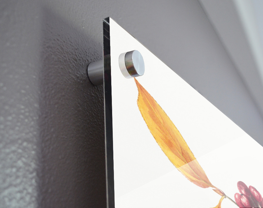 Printed to the edge - Ready to hang - provided with 4 premium polished aluminum stand off ( wall screws and mounting hardware provided ) We suggest a thicker 3/16" acrylic for any size over 42 inches to guarantee a straight acrylic, without curvature