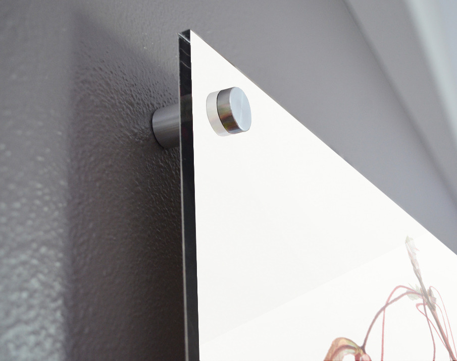 Printed to the edge - Ready to hang - provided with 4 premium polished aluminum stand off ( wall screws and mounting hardware provided ) We suggest a thicker 3/16" acrylic for any size over 42 inches to guarantee a straight acrylic, without curvature