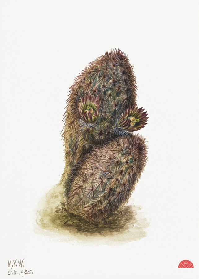 Green Strawberry Cactus Echinocereus viridiflorus 1925 by Mary Vaux Walcott.