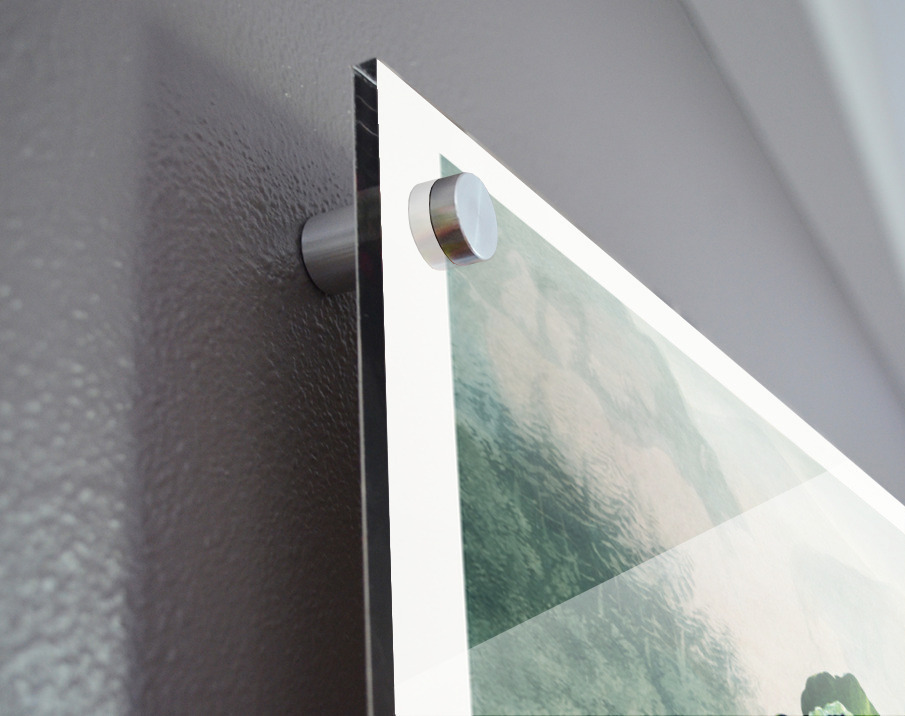 Printed to the edge - Ready to hang - provided with 4 premium polished aluminum stand off ( wall screws and mounting hardware provided ) We suggest a thicker 3/16" acrylic for any size over 42 inches to guarantee a straight acrylic, without curvature