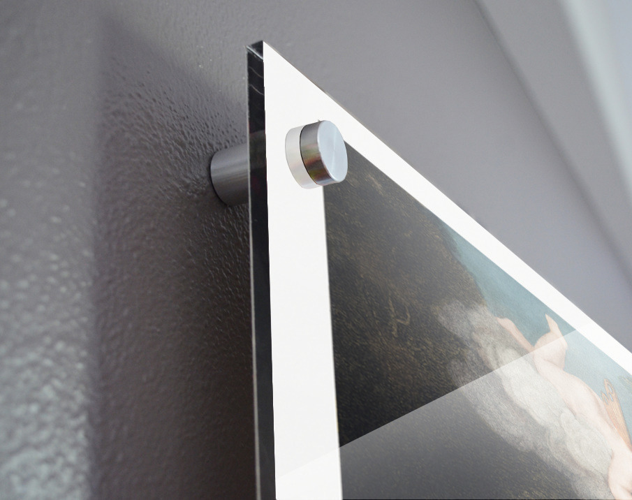 Printed to the edge - Ready to hang - provided with 4 premium polished aluminum stand off ( wall screws and mounting hardware provided )