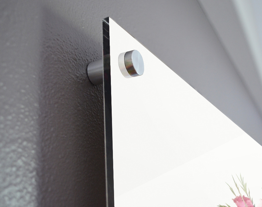 Printed to the edge - Ready to hang - provided with 4 premium polished aluminum stand off ( wall screws and mounting hardware provided ) We suggest a thicker 3/16" acrylic for any size over 42 inches to guarantee a straight acrylic, without curvature