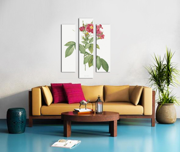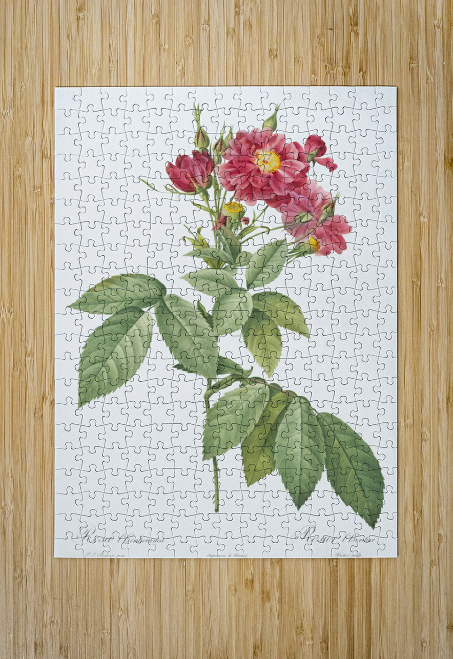 French Rose also known as Ordinary Provins Rosebush Rosa galluca offuenalis from Les Roses 1817–1824 by Pierre-Joseph Redouté.