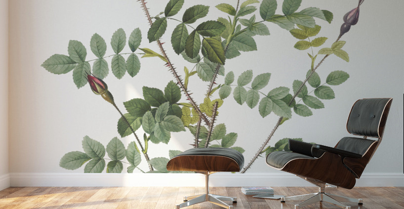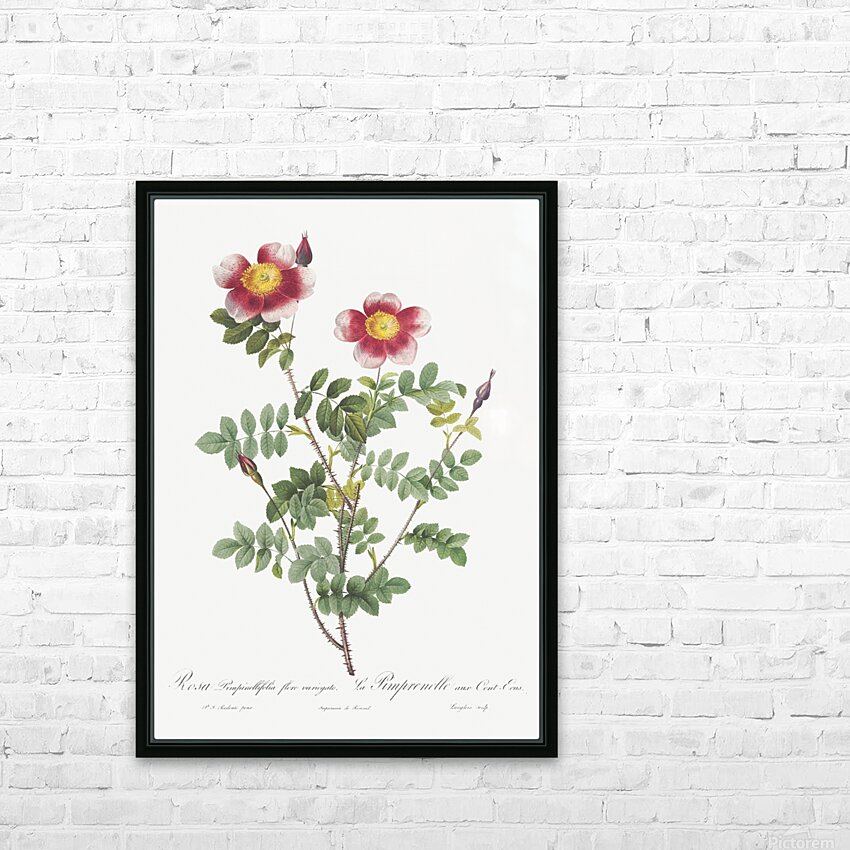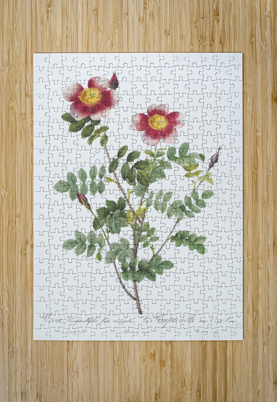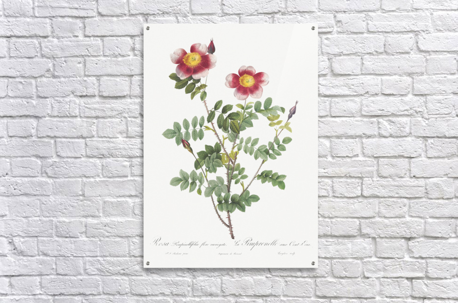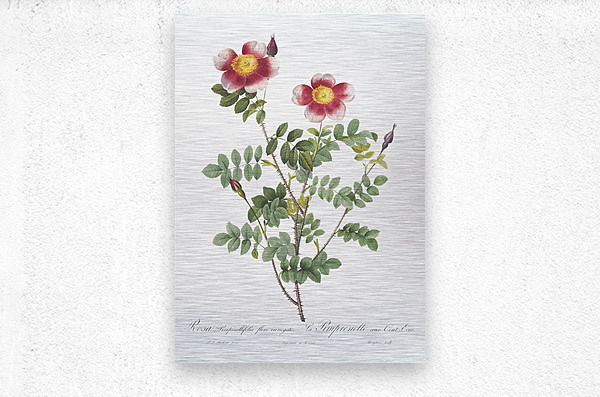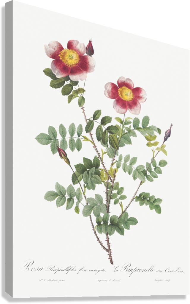 Variegated Flowering Variety of Burnet Rose Rosa pimpinellifolia flore variegato from Les Roses 1817–1824 by Pierre-Joseph Redouté.