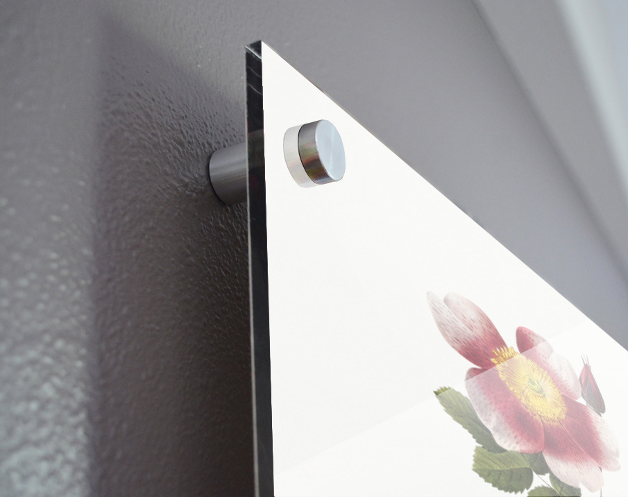 Printed to the edge - Ready to hang - provided with 4 premium polished aluminum stand off ( wall screws and mounting hardware provided ) We suggest a thicker 3/16" acrylic for any size over 42 inches to guarantee a straight acrylic, without curvature