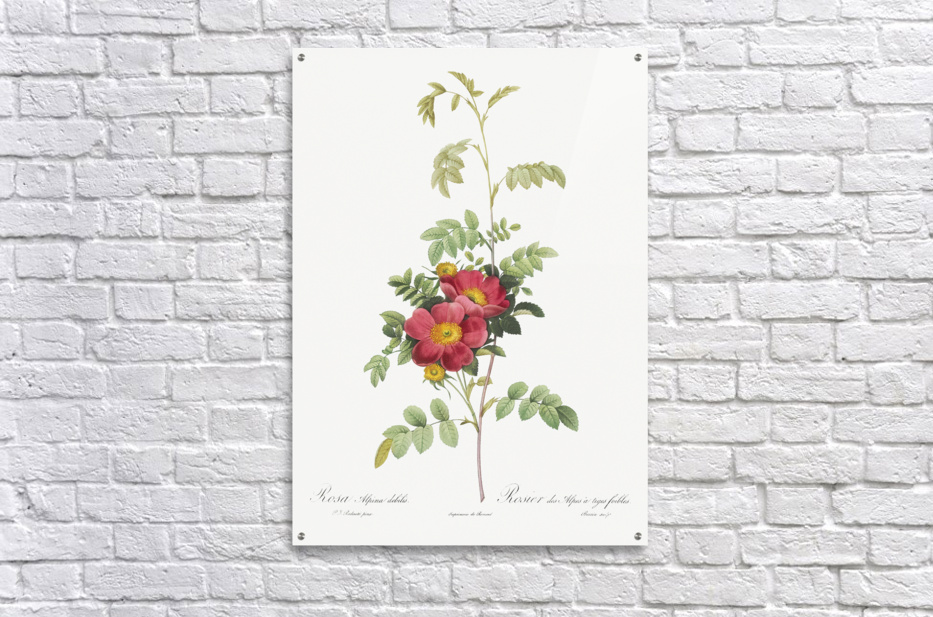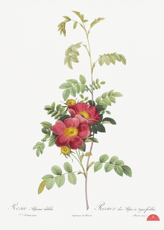 Alpine Rose also known as Rosebush of Alpes with Weak Stems Rosa alpina debilis from Les Roses 1817–1824 by Pierre-Joseph Redouté.