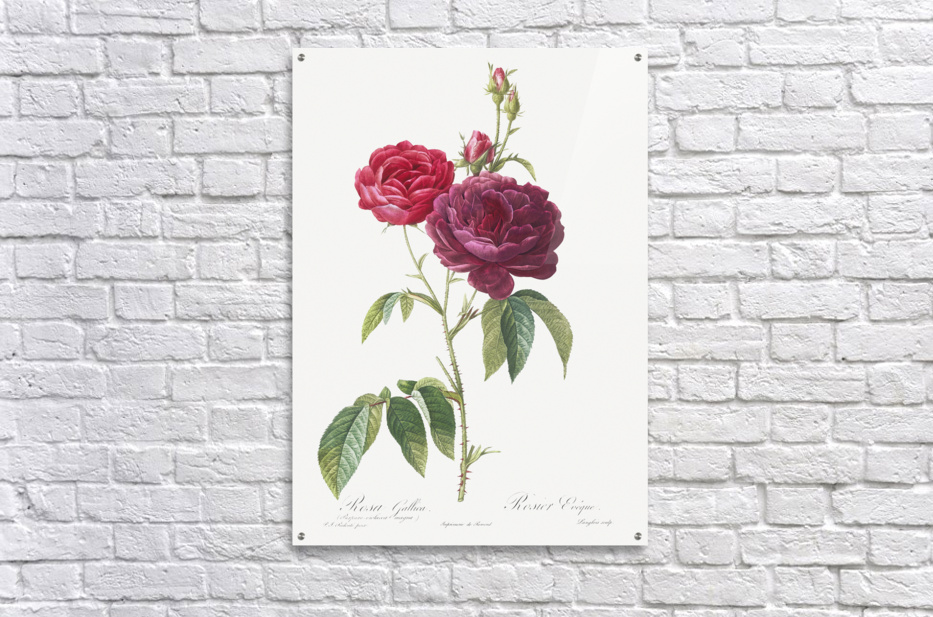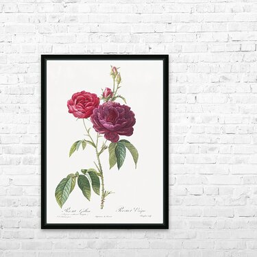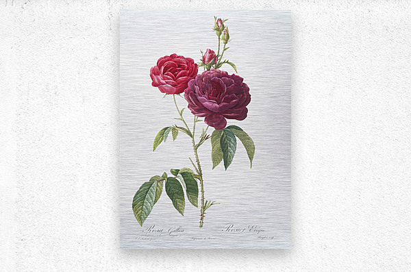 Purple French Rose Rosa gallica purpuro-violacea magna from Les Roses 1817–1824 by Pierre-Joseph Redouté.