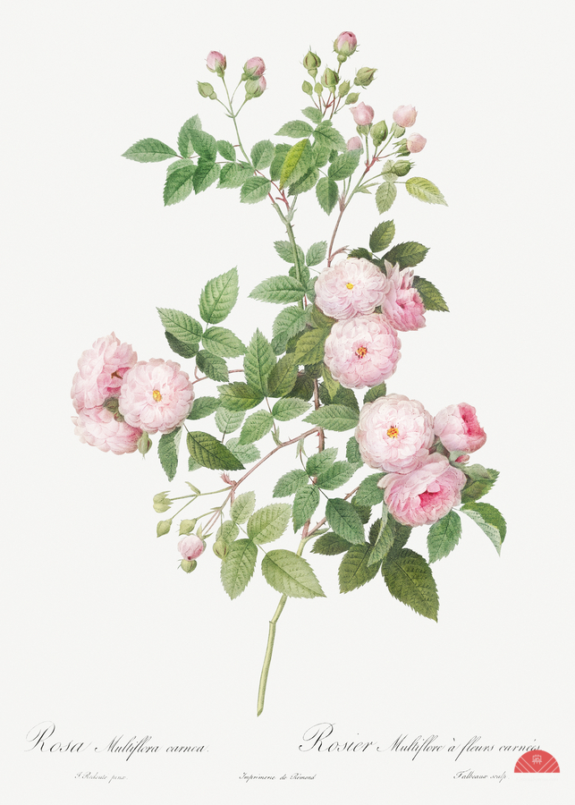 Flesh-Pink Multiflora Rosa multiflora carnea from Les Roses 1817–1824 by Pierre-Joseph Redouté.
