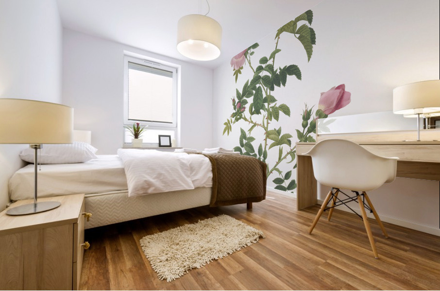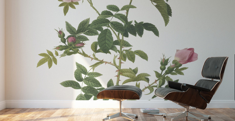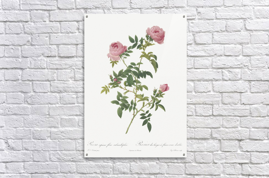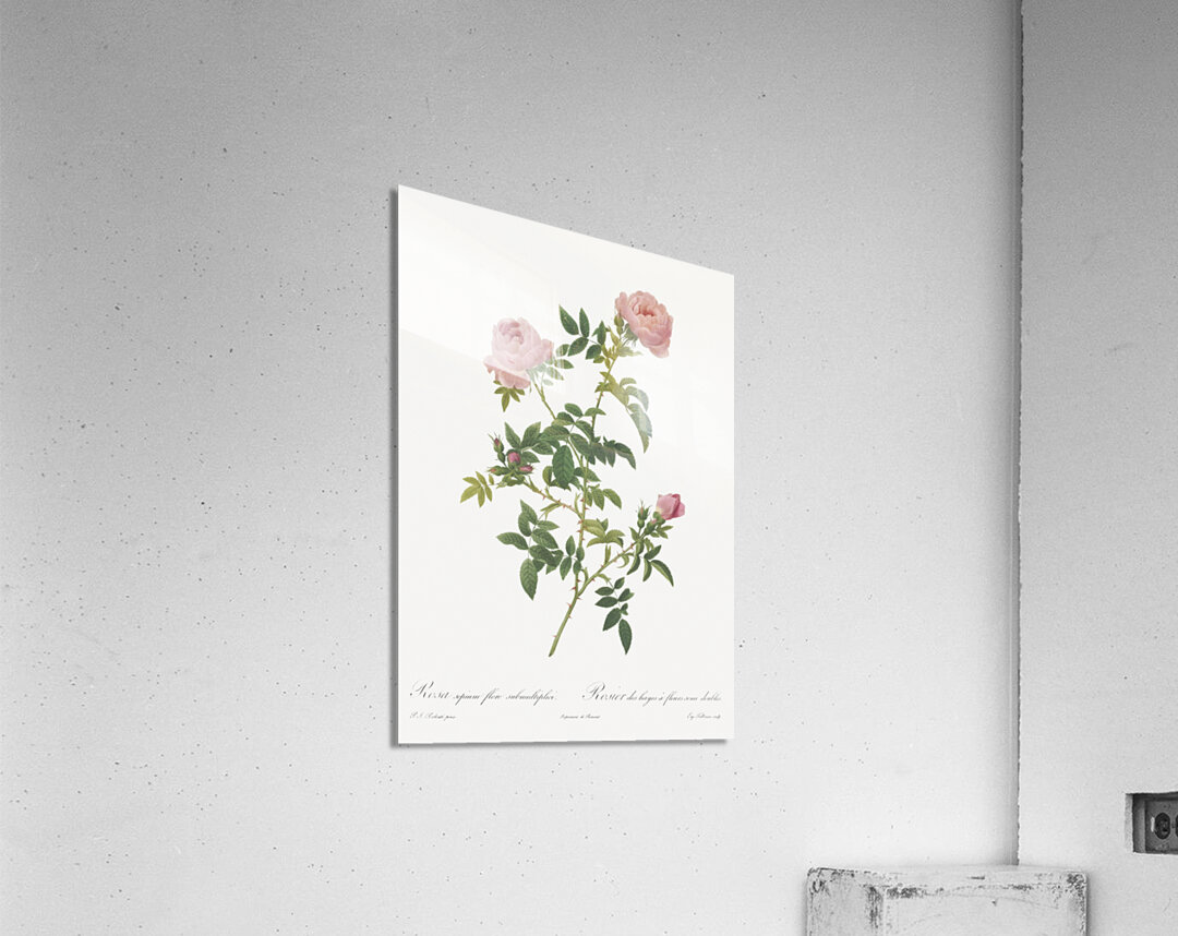 Hundred-petalled English Rose also known as Rose of the Hedges with semi-double flowers Rosa centifolia Anglica rubra from Les Roses 1817–1824 by Pierre-Joseph Redouté.