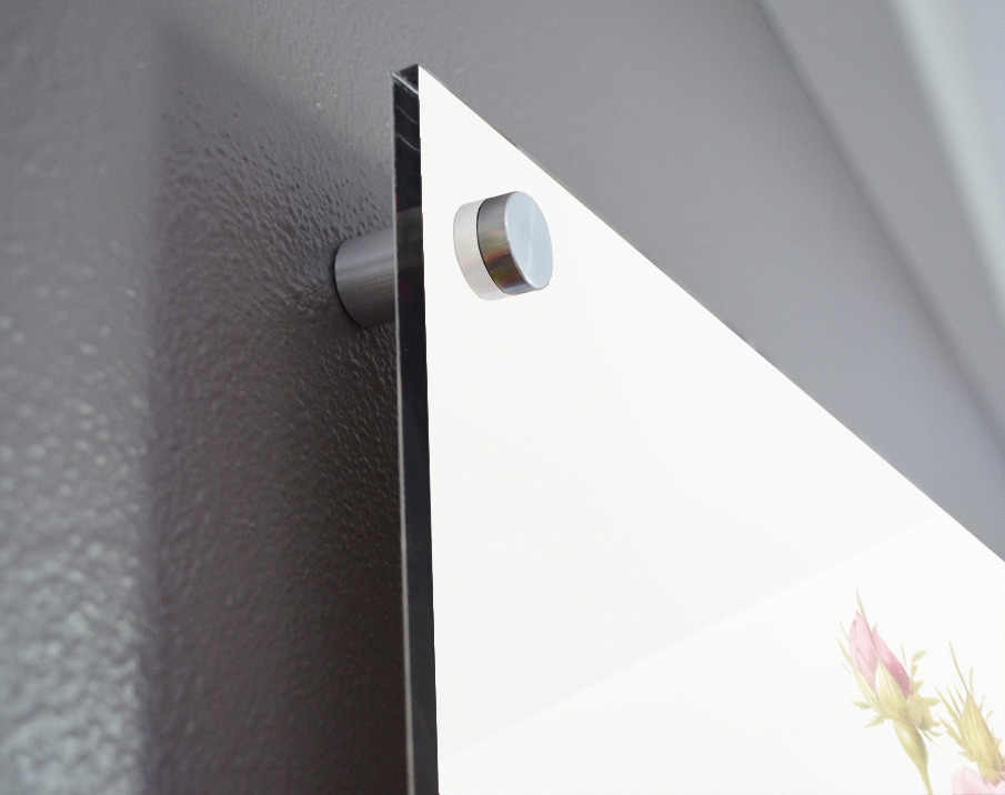 Printed to the edge - Ready to hang - provided with 4 premium polished aluminum stand off ( wall screws and mounting hardware provided ) We suggest a thicker 3/16" acrylic for any size over 42 inches to guarantee a straight acrylic, without curvature