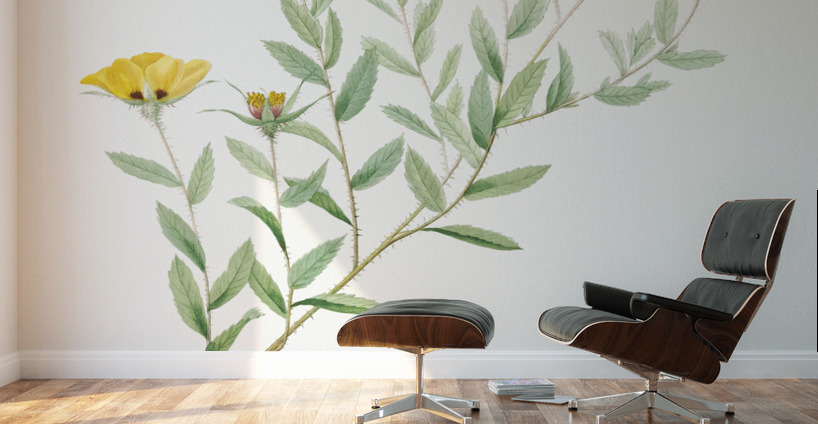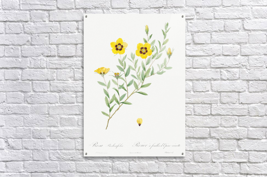 Rosa persica also known as Rose-Leaved Rosebush Rosa berberifolia from Les Roses 1817–1824 by Pierre-Joseph Redouté.
