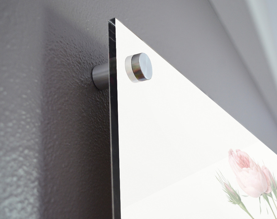 Printed to the edge - Ready to hang - provided with 4 premium polished aluminum stand off ( wall screws and mounting hardware provided ) We suggest a thicker 3/16" acrylic for any size over 42 inches to guarantee a straight acrylic, without curvature