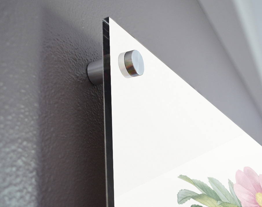 Printed to the edge - Ready to hang - provided with 4 premium polished aluminum stand off ( wall screws and mounting hardware provided ) We suggest a thicker 3/16" acrylic for any size over 42 inches to guarantee a straight acrylic, without curvature