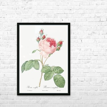 Cabbage Rose also known as One Hundred-Leaved Rose Rosa centifolia from Les Roses 1817–1824 by Pierre-Joseph Redouté.