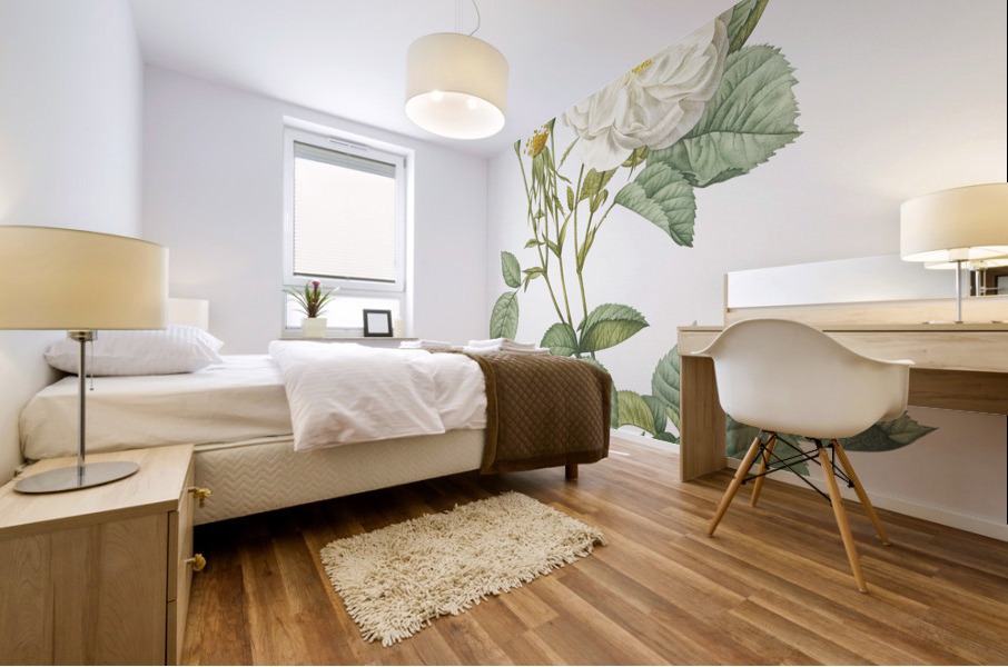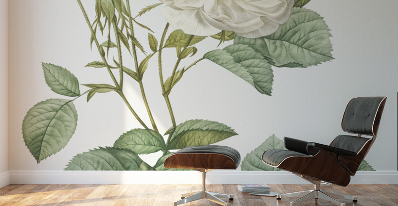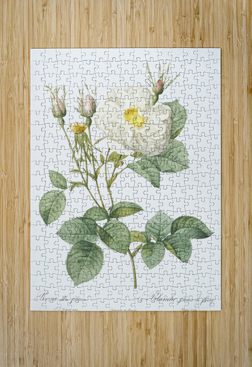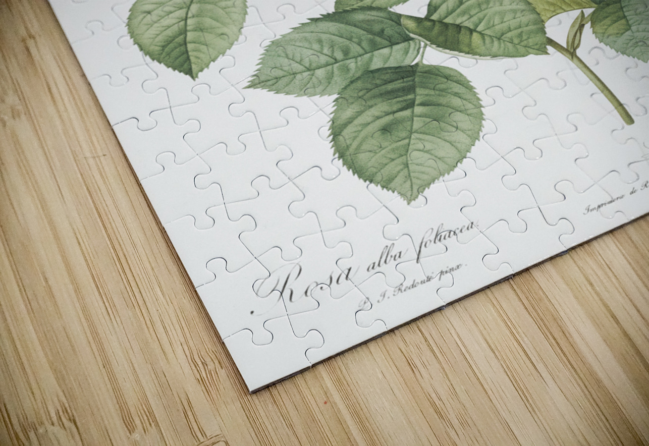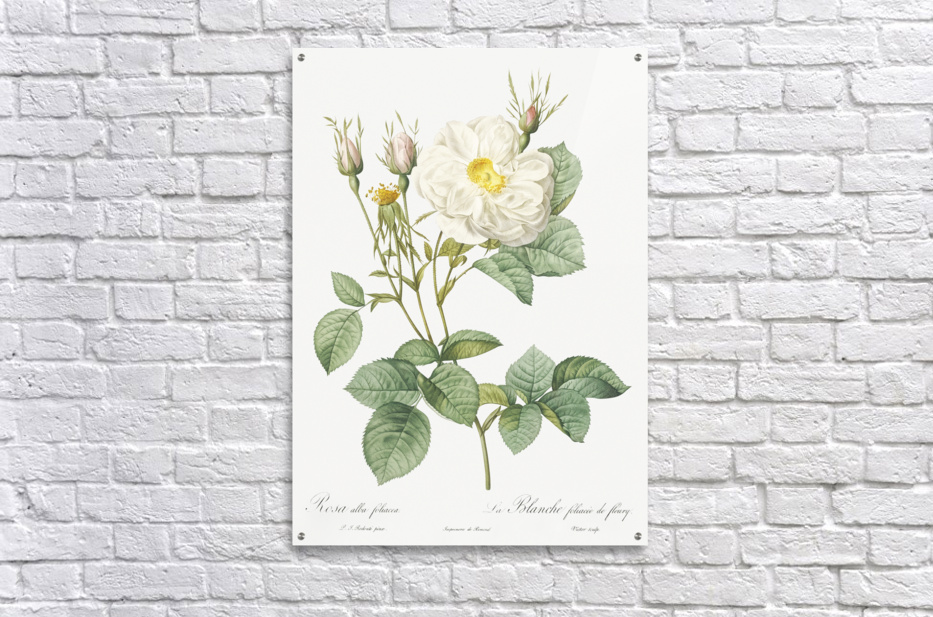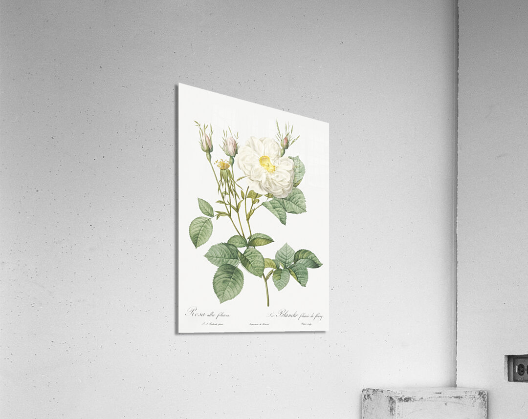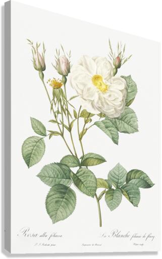 Rosa x alba also known as the White Leaf of Fleury Rosa alba foliacea from Les Roses 1817–1824 by Pierre-Joseph Redouté.