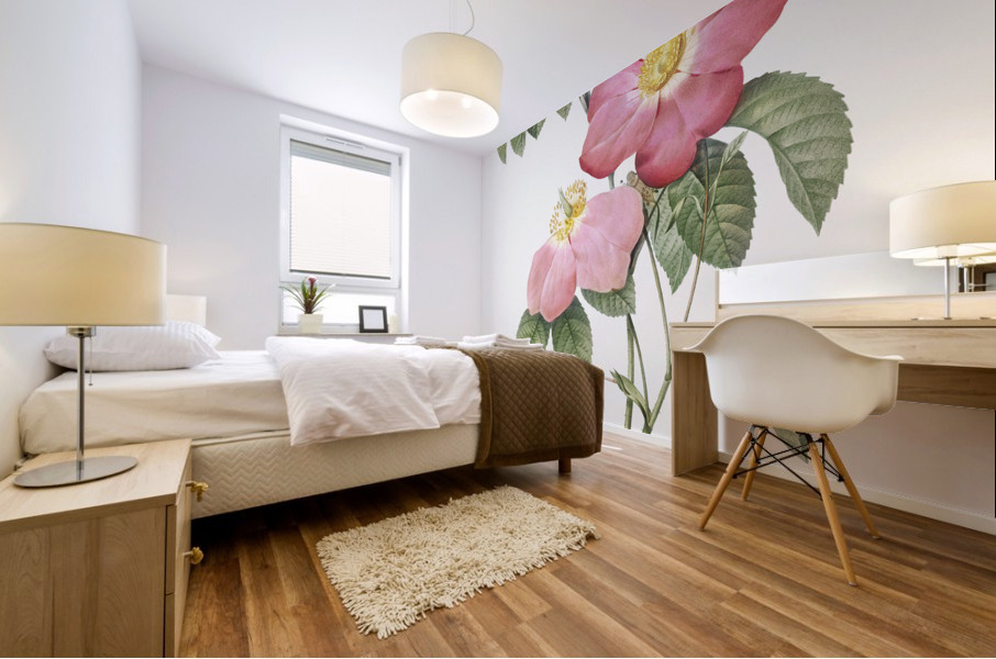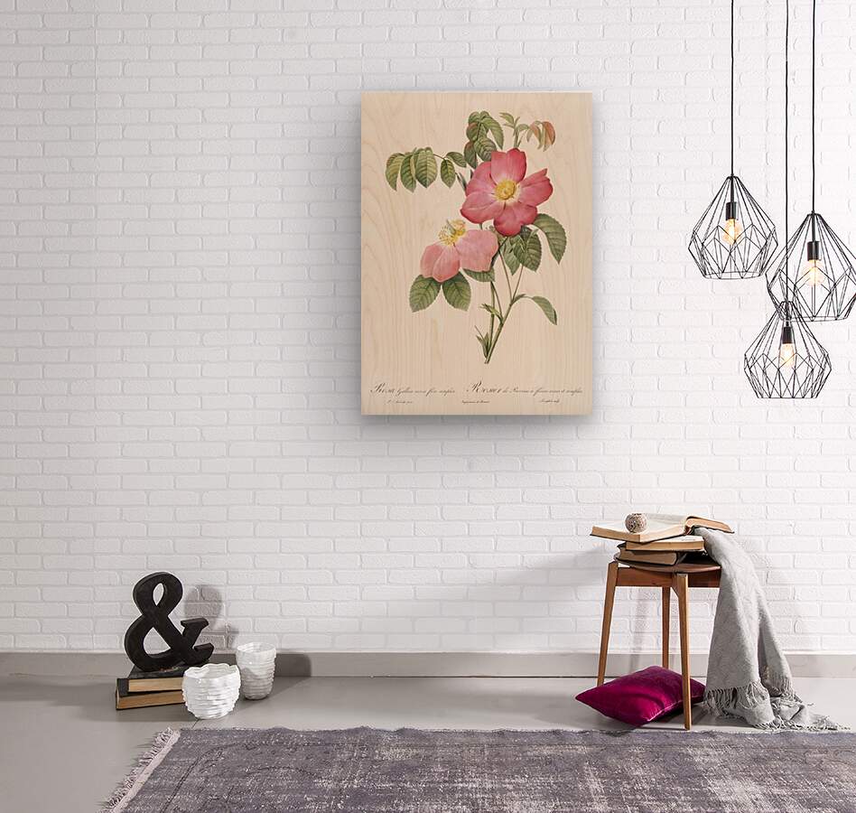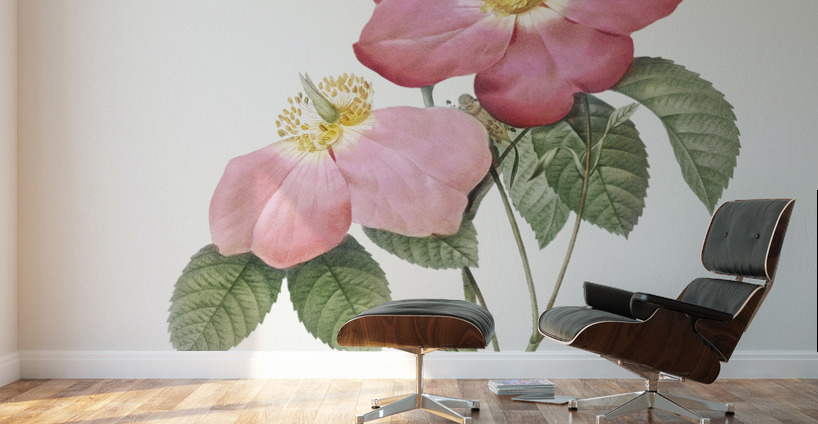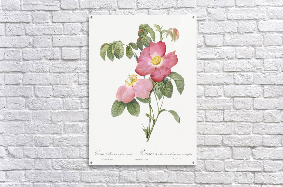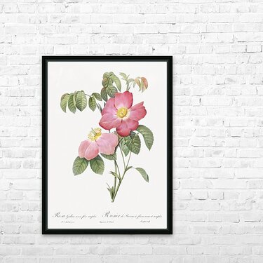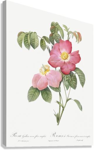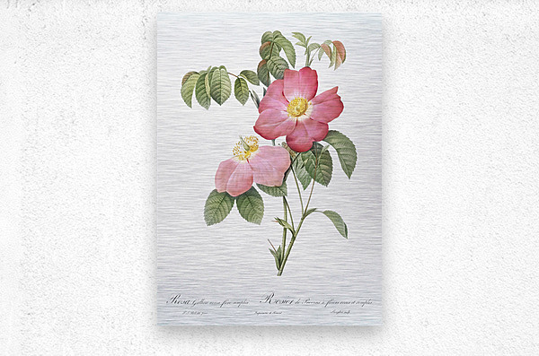 Pink French Rose also known as Provins Rosebush with Pink and Simple Flowers Rosa gallica rosea flore simplica from Les Roses 1817–1824 by Pierre-Joseph Redouté.