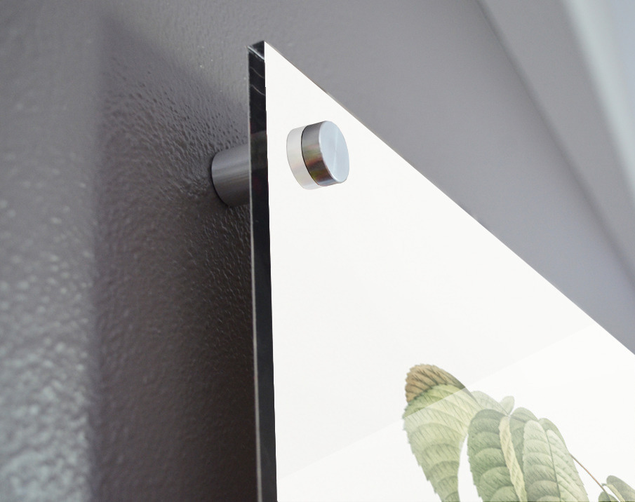 Printed to the edge - Ready to hang - provided with 4 premium polished aluminum stand off ( wall screws and mounting hardware provided ) We suggest a thicker 3/16" acrylic for any size over 42 inches to guarantee a straight acrylic, without curvature